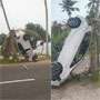 මගියා බේරන්න ගිය මෝටර් රථය පොල් ගහේ
