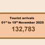 නොවැම්බර් මුල් දින 19ට සංචාරකයන් 132 783ක් ඇවිත්