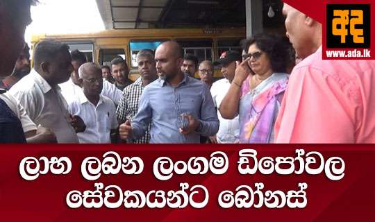 Read Moreලාභ ලබන ලංගම ඩිපෝවල සේවකයන්ට බෝනස් සහ පාඩු ලබන ලංගම ඩිපෝවල සේවකයන්ට දිමනාවක් ලබා දින බව ප්රවාහන නියෝජ්ය අමාත්ය ප්රසන්න ගුණසේන මහතා පැවසිය.