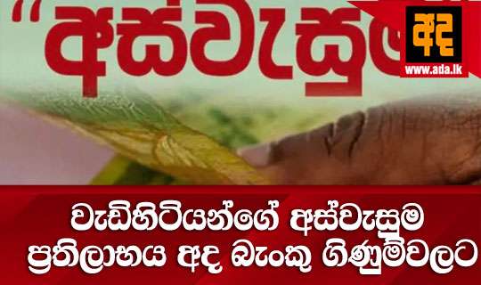 Read Moreඅස්වැසුම සුබසාධක ප්රතිලාභ යෝජනා ක්රමයේ පළමු අදියරේ වයස අවුරුදු 70ට වැඩි වැඩිහිටියන් සඳහා මාර්තු මස වැඩිහිටි දීමනාව අද (26) ප්රතිලාභීන්ගේ ගිණුම්වලට බැර කරන බව සුබසාධක ප්රතිලාභ මණ්ඩලය සඳහන් කර ඇත.