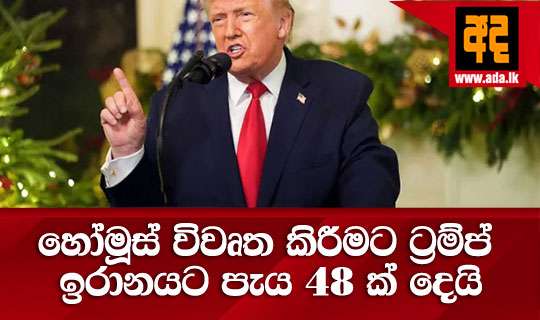 Read Moreපැය 48 ක් ඇතුළත හෝමූස් සමුද්ර සන්ධිය ’’තර්ජනයකින් තොරව’’ විවෘත කිරීමට ඉරානය කටයුතු නොකළ හොත් ඇමෙරිකාව විසින් ඉරානයේ බලාගාර ’’මකා දමන’’ බව ඇමෙරිකානු ජනපති ඩොනල්ඩ් ට්රම්ප් පවසයි.
