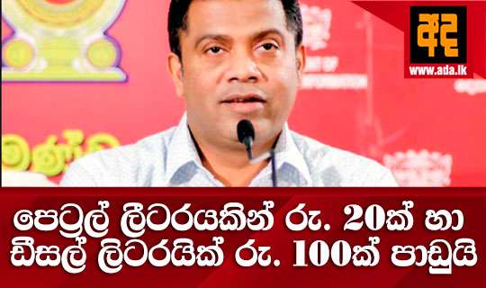Read Moreඉන්ධන මිල වැඩිකළත් ඩීසල් ලීටරයකිින් රු 100ක් සහ පෙට්රල් ලීටරයකින් රු 20ක් පාඩු ලබන බව කැබිනට් ප්රකාශක අමාත්ය නලින්ද ජයතිස්ස මහතා පැවැසීය. අද කොළඹදි පැවැති මාධ්ය හමුවකදී ඔහු පැවැසුවේ මෙම පාඩුව පියවීමට රජය විසින් මාසයකට රුපියල් බිලියන 20ක වැයක් දරන බවයි.