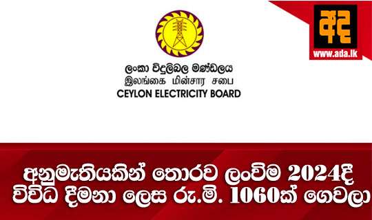 ලංකා විදුලිබල මණ්ඩලය විසින් එහි සේවකයින් සදහා වැටුප් හා සේවක සංඛ්යා කොමිෂන් සභාවේ නිර්දේශය සහ කළමණාකරණ සේවා දෙපාර්තමේන්තුවේ අනුමැතිය ලබානොගෙන 2024 වර්ෂය තුල පමණක් රුපියල් මිලියන 1,060.02ක විවිධ දිමනා ගෙවා ඇති බැව් විගණකාධිපතිවරයා විසින් නිකුත්කොට ඇති වාර්ෂික විගණන වාර්තාවේ සදහන් වේ.