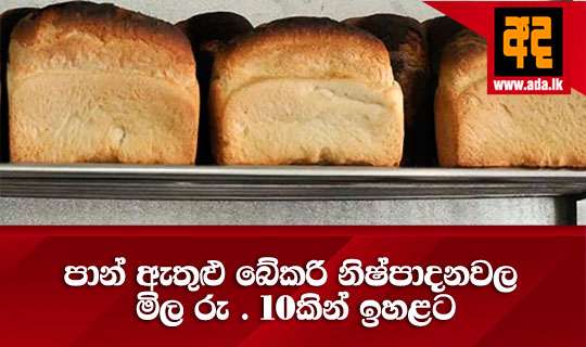 Read Moreග්රෑම් 450 ක් බරැති පාන් ගෙඩියක් ඇතුළු සියලුම බේකරි වල නිෂ්පාදනය කෙරෙන කෙටි කෑම වල මිළ රුපියල් 10.00 කින් 03/24 දින අලුයම 12.00 පැයේ සිට ඉහළ නැංවීමට සමස්ථ ලංකා බේකරි හිමියන්ගේ සංගමයේ විධායක සභාව තීරණය කළ බව එම සංගමයේ සභාපති එන්.කේ.ජයවර්ධන මහතා පැවසීය.