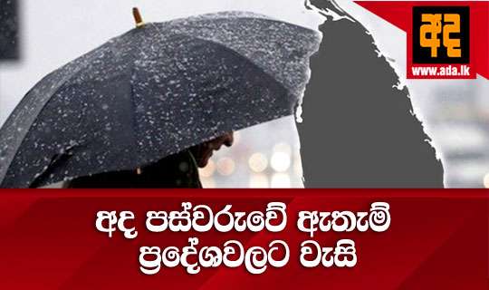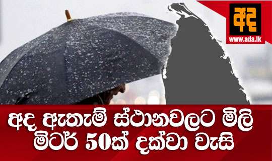 බස්නාහිර, සබරගමුව සහ වයඹ පළාත්වලත් ගාල්ල, මාතර, මහනුවර සහ නුවරඑළිය දිස්ත්රික්කවලත් අද රාත්රී තැනින් තැන වැසි හෝ ගිගුරුම් සහිත වැසි ඇතිවන බව කාලගුණ විද්යා දෙපාර්තමේන්තුව පවසයි. බස්නාහිර සහ සබරගමුව පළාත්වලත් ගාල්ල සහ මාතර දිස්ත්රික්කවලත් ඇතැම් ස්ථාන වලට මි.මි. 50 ට වැඩි තරමක තද වැසි ඇතිවිය හැකි බවද ක