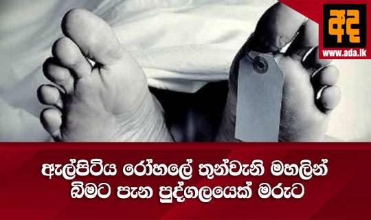 Read Moreඇල්පිටිය මූලික රෝහලේ තුන්වන මහලින් බිමට පැන පුද්ගලයෙකු අද උදෑසන සිය දිවි හානිකරගෙන ඇතැයි පොලිසිය පවසයි. මියගොස් සිටින පුද්ගලයා කරන්දෙණිය කොස්වතු මානාන,ලිපිනයේ පදිංචි එච්.ඒ.අසෝක කුලරත්න නැමැති 83 හැවිරිදි පියෙකු බවද පොලිසිය කියයි.