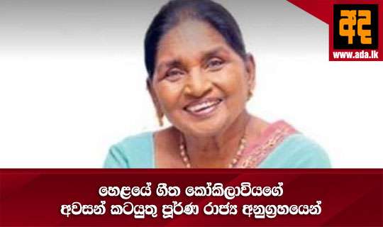 හෙළයේ ගීත කෝකිලාවිය ලෙස විරුධාවලිය ලැබූ කලාශූරී ලතා වල්පොල මහත්මිය අද (27) අභාවප්රාප්ත වූවාය. මියයන විට ඇය 92 වන වියේ පසුවුණි. ඇය ගීත දස දහසකට අධික ප්රමාණයක් ගායනා කර ඇති අතර සිනමාවේ සදාකාලික ’ගී රාජිනිය’ ලෙසද ඇය හදුන්වයි. අවසන් කටයුතු පසුව දැනුම් දීමට නියමිතය.