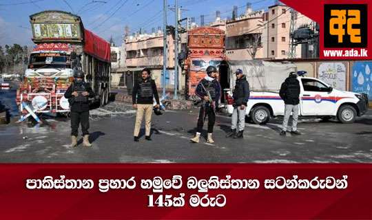 Read Moreපාකිස්තාන ආරක්ෂක අංශ එල්ල කළ ප්රහාර හමුවේ බලුකිස්තානයෙ සටන්කරුවන් 145 දෙනෙකු ජීවිතක්ෂයට පත්ව තිබේ.