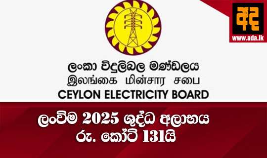 ලංකා විදුලිබල මණ්ඩලය විසින් ඉකුත් වර්ෂයේ (2025) මුල්මාස හය තුලදි රුපියල් බිලියන 13.16ක ශුද්ධ අලාභයක් වාර්තාකොට ඇති බැව් බලශක්ති අමාත්යංශය විසින් 2025 වර්ෂයට අදාළව නිකුත්කොට ඇති ප්රගති වාර්තාවේ සදහන් වේ.
