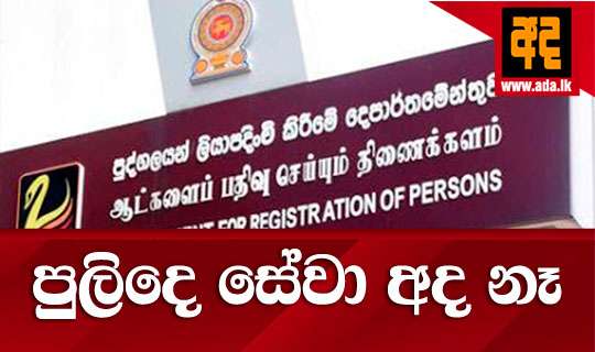 පුද්ගලයින් ලියාපදිංචි කිරීමේ දෙපාර්තමේන්තුවේ පරිගණක පද්ධතියේ හදිසි බිඳවැටීමක් සිදුව ඇතැයි එම දෙපාර්තමේන්තුව සඳහන් කරයි. ඒ හේතුවෙන් අද (24) පුද්ගලයින් ලියාපදිංචි කිරීමේ දෙපාර්තමේන්තුවේ ප්රධාන කාර්යාලය සහ සියලුම පළාත් කාර්යාලවල එක්දින සේවාව ඇතුළු සියලු මහජන සේවාවන් ක්රයාත්මක නොකිරීමට තීරණය කර තිබේ.