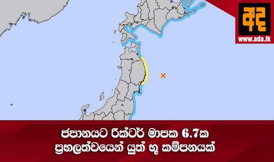 ජපානයට වෙරළට ඔබ්බෙන් රික්ටර් මාපක 6.7ක ප්රභලත්වයෙන් යුත් භූ කම්පනයක් හටගෙන තිබේ.