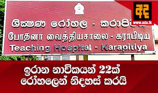 Read Moreගාල්ල කරාපිටිය ජාතික රෝහලේ ප්රථිකාර ලබමින් සිටි ඉරාන නාවිකයින් අතුරින් 22 දෙනෙකු ඊයේ (07) රෝහලින් නිදහස් කළ බැව් රෝහල් අධ්යක්ෂක එස්.ඩි.යු.එම් රංග මහතා පවසයි.