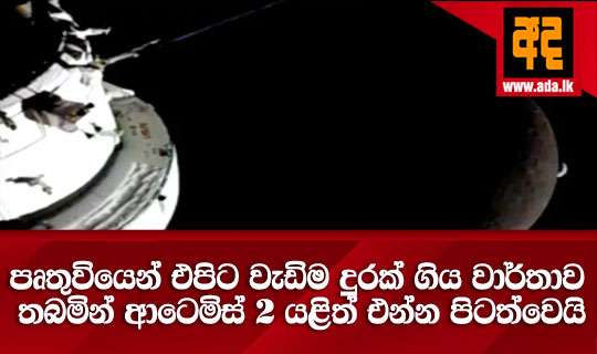 Read Moreවාර්තාගත ලෙස පෘතුවියේ සිට සැතපුම් 252,756 (කිලෝමීටර 406,771) ක දුරක් ගමන් කර සඳ පසුකර යාමෙන් පසු, ආටෙමිස් II ගගනගාමීන් යළත් පෘතුවිය වෙත පැමිණීමට ගමන් ආරම්භ කර තිබේ.