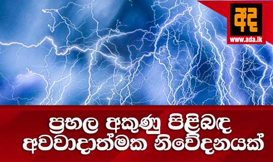 Read Moreදිවයිනේ බොහෝ ප්ර දේශවල පස්වරු 1.00 පමණ පසුව තැනින් තැන වැසි හෝ ගිගුරුම් සහිත වැසි ඇතිවන බව කාලගුණ විද්යා දෙපාර්තමේන්තුව කියයි. බස්නාහිර, සබරගමුව, මධ්යම, වයඹ, උතුරු-මැද හා දකුණ පළාත්වලත් මන්නාරම දිස්ත්රික්කයේත් ඇතැම් ස්ථානවලට මි.මී. 75ට වැඩි තරමක තද වැසි ඇති විය හැකි බවද එම දෙපාර්තමේන්තුව පවසයි.