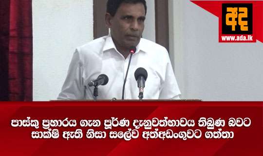 Read Moreහිටපු බුද්ධි ප්රධානී සලේ අත්අඩංගුවට ගත්තේ පාස්කු ප්රහාරය පිළිබඳ පූර්ණ දැනුවත්භාවය තිබූ බවට සාක්ෂි ලැබීම නිසයි - මහජන ආරක්ෂක අමාත්ය