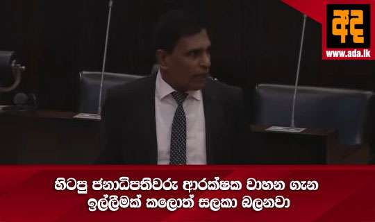 Read Moreහිටපු ජනාධිපතිවරු ආරක්ෂක වාහන ලබා දෙන ලෙස ඉල්ලීමක් කළහොත් ඒ පිළිබඳ සලකා බැලීමට ආණ්ඩුව සූදානම් බව මහජන ආරක්ෂක අමාත්ය ආනන්ද විජේපාල මහතා පැවසීය.