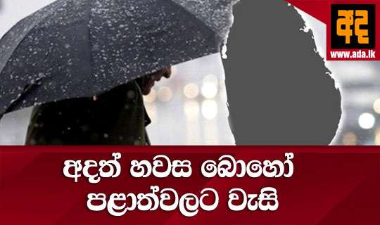 Read Moreදිවයිනේ බොහෝ ප්රදේශ වල පස්වරු 1.00 න් පමණ පසු වැසි හෝ ගිගුරුම් සහිත වැසි ඇති වන බව කාලගුණ විද්යා දෙපාර්තමේන්තුව නිවේදනය කරයි.