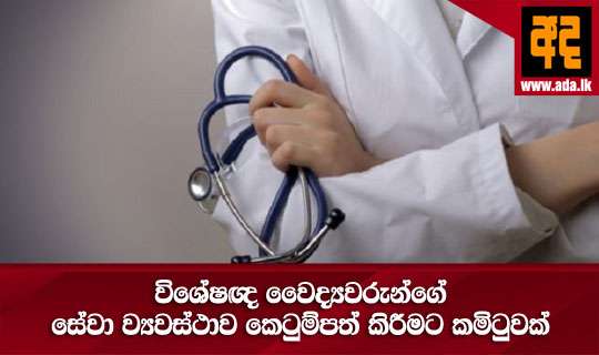 Read Moreවිශේෂඥ වෛද්යවරුන් සඳහා වන සේවා ව්යවස්ථාව කෙටුම්පත් කිරීම සඳහා කමිටුවක් පත් කිරීමට සෞඛ්ය හා ජනමාධ්ය අමාත්යංශය පියවර ගෙන තිබේ.
