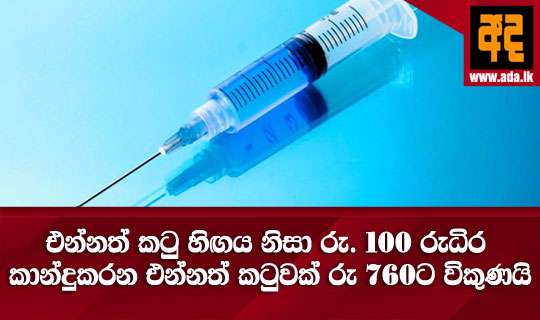 Read Moreවකුගඩු රෝගීන්ගේ රුධිර කාන්දු කරනය සඳහා යොදා ගන්නා එන්නත් කටු රජයේ රෝහල්වල නොමැති වීම හේතුවෙන් ඒවා පෞද්ගලික ඖෂධ සැල්වලින් මිලදී ගැනීමට සිදුවීම හේතුවෙන් රුපියල් 100 කට වැනි මුදලකට තිබූ එම එන්නත් කටුවක් රුපියල් 760 ක් වැනි මුදලක් දක්වා ඉහල යාමෙන් රෝගීහු දැඩි අපහසුතාවයට පත්ව සිටි.