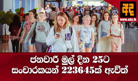 Read Moreමේ වසරේ ජනවාර මස පළමු වැනිදා සිට 25 දා දක්වා ශ්රී ලංකාවට සංචාරකයන් 223645 පැමිණ ඇති බව ශ්රී ලංකා සංචාරක සංවර්ධන අධිකාරිය පවසයි. ඒ අනුව ආසන්න වශයෙන් දිනකට ශ්රී ලංකාවට පැමිණ ඇති සංචාකයන් සංඛ්යාව ආසන්න වශවෙන් 8900ක් පමණ වෙයි. ජනවාරි මාසයේදී ශ්රී ලංකාවට වැඩිම සංචාරකයන් ප්රමාණයක් පැමිණ ඇත්තේ ඉන්දියාවෙන් වන අතර එම අගය 41 603කි.