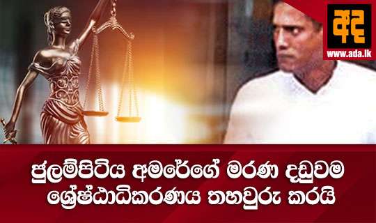 Read Moreහම්බන්තොට, කටුවනේදී 2012 දී පුද්ගලයින් දෙදෙනෙකු ඝාතනය කර තවත් අයෙකුට තුවාල සිදු කිරීමේ චෝදනාවට වරදකරු වූ ගීගනගේ ගමගේ අමරසිරි නොහොත් ‘ජූලම්පිටියේ අමරේ’ ට තංගල්ල මහාධිකරණය විසින් නියම කරන ලද මරණ දඬුවම ශ්රේෂ්ඨාධිකරණය අද තහවුරු කළේය.