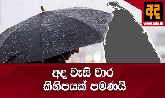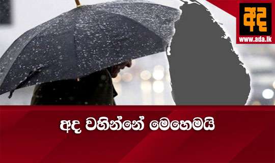 Read Moreඋතුරු, උතුරු - මැද, බස්නාහිර, සබරගමුව, මධ්යම සහ වයඹ පළාත්වලත් ගාල්ල සහ මාතර දිස්ත්රික්කවලත් අද දින වැසි වාර කිහිපයක් ඇති විය හැකි බව කාලගුණ විද්යා දෙපාර්තමේන්තුව පවසයි. ඒම දෙපාර්තමේනතුව අද පෙරරුවේ නිකුත් කල නිවේදනයක මේ බව දැක්වෙයි.