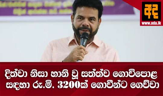 දිට්වා සුළි කුණාටුවෙන් හානි වූ සත්ත්ව ගොවිපොළ සඳහා වන්දි ලෙස රුපියල් ලක්ෂ 32,000 කට වැඩි මුදලක් ගොවීන්ට ගෙවා අවසන් කර ඇති බව කෘෂිකර්ම සහ පශු සම්පත් නියෝජ්ය අමාත්ය නාමල් කරුණාරත්න පවසයි.