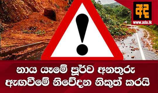 Read Moreතද වැසි ඳපිළිබ අවවාදාත්මක රතු නිවේදනයක් කාලගුණ විද්යා දෙපාර්තමේන්තුව විසින් නිකුත් කර තිබේ. අද පස්වරු 3.45ට නිකුත් කළ මෙම නිවේදනය හෙට පස්වරු 3.45 දක්වා වලංගු වෙයි. නැගෙනහිර, මධ්යම, ඌව පළාත් හා පොළොන්නරුව දිස්ත්රික්ක ඳසහා අදාළ වන පරිදි මෙම නිවේදනය නිකුත් කර තිබේ.