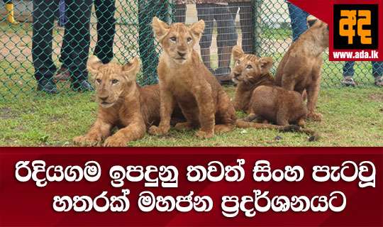Read Moreරිදියගම සෆාරි උද්යානයේ ’’ඩෝරා ’’ නැමති සිංහ ධේනුව විසින් බිහිකළ මාස හතරක පමණ වයස සිංහ පැටවුන් සිවු දෙනෙකු අද(26) සිට මහජන ප්රදර්ශනයට තබන බව ජාතික සත්වෝද්යාන දෙපාර්තමේන්තුවේ අධ්යක්ෂ ජනරාල් චන්දන රාජපක්ෂ මහතා කියා සිටියේය.