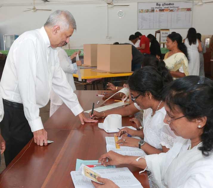 අග්රාමාත්ය රනිල් වික්රමසිංහ මහතා හා මෛත්රී වික්රමසිංහ මහත්මිය කොළඹ රාජකීය විදුහලේදී සිය ඡන්දය භාවිත කළේය.