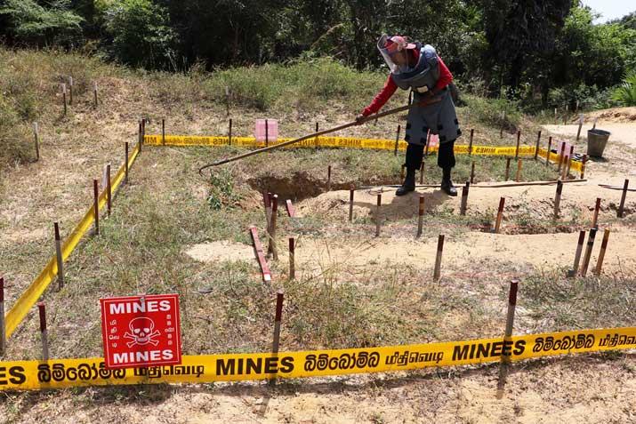 යුද සමයේදී වළදමන ලද බිම්බෝම්බ භූමියේ වර්ග කි.මී.1,302 සිට බිම්බෝම්බ ඉවත් කරමින් උතුරු නැගෙනහිර තවත් ඉතිරිව ඇත්තේ වර්ග කි.මී.18ක් පමණක් බවට ජාතික ප්රතිපත්ති, ආර්ථික කටයුතු, නැවත පදිංචි කිරීම හා පුනරුත්ථාපන, උතුරු පළාත් සංවර්ධන සහ යෞවන කටයුතු අමාත්යාංශ ලේකම් වී. සිවඥානසෝති මහතා පැවසීය.
