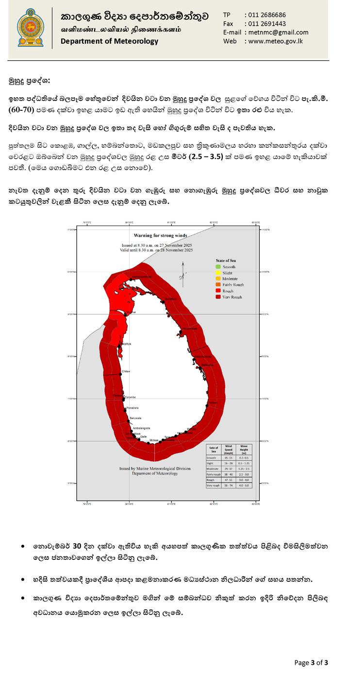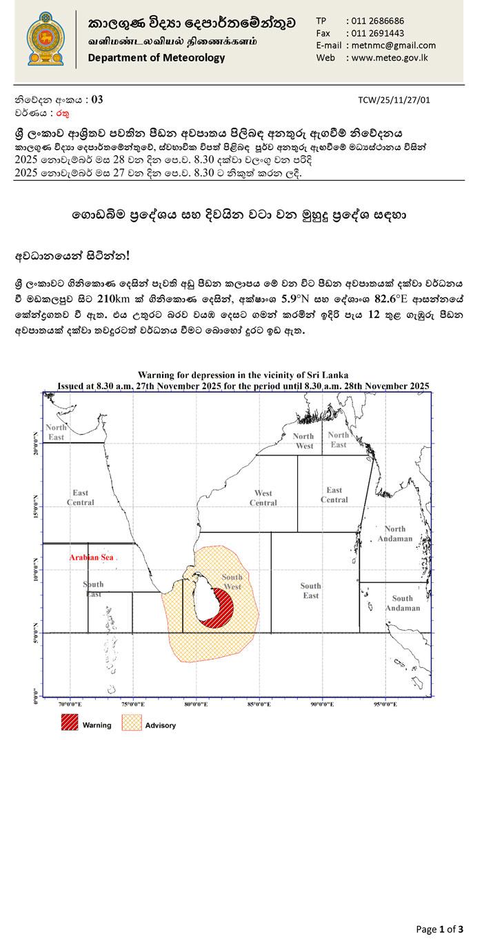 2025 නොවැම්බර් මස 27 වන බ්රහස්පතින්දා