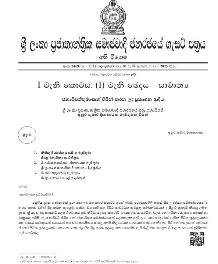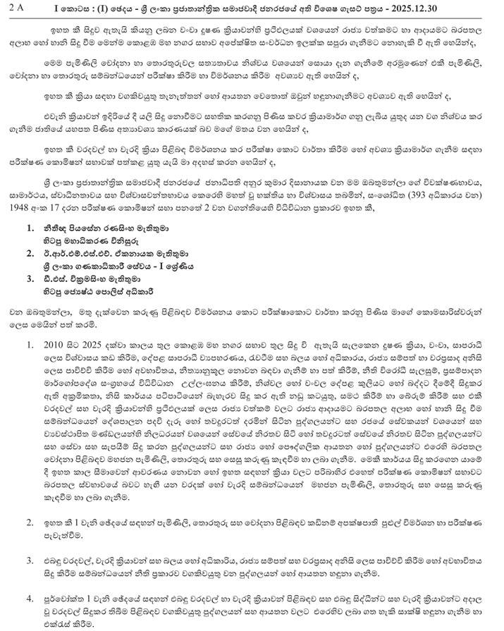 කොළඹ මහ නගර සභවේ සිදුව ඇතැයි පැවැසෙන දූෂණ හා අක්රමිකතා සෙවීමට ජනපති කොමිෂමක් පත්කිරීමට ජනපති අනුර කුමාර දිසානායක මහතා කටයුතු කර තිබේ.