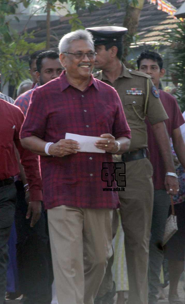 ශ්රී ලංකා පොදුජන පෙරමුණේ ජනාධිපති අපේක්ෂක, හිටපු ආරක්ෂක ලේකම් ගෝඨාභය රාජපක්ෂ මහතා හා අනෝමා රාජපක්ෂ මහත්මිය නුගේගොඩදි සිය ඡන්දය භාවිත කළහ.