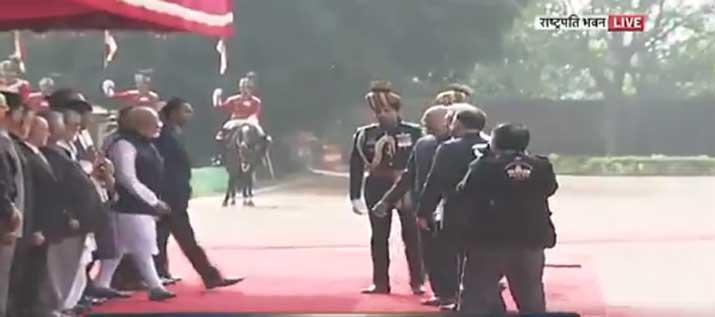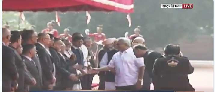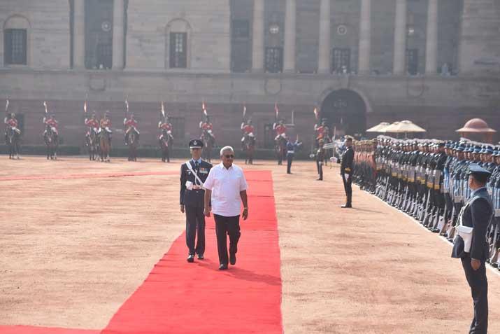 පසුව ඉන්දීය ජනපති රාම්නාත් ගොවින්ද් මහතා හා ඉන්දීය අග්රාමාත්ය නරේන්ද්ර මෝදි මහතා විසින් ඔහුව පිළිගනු ලැබීය.