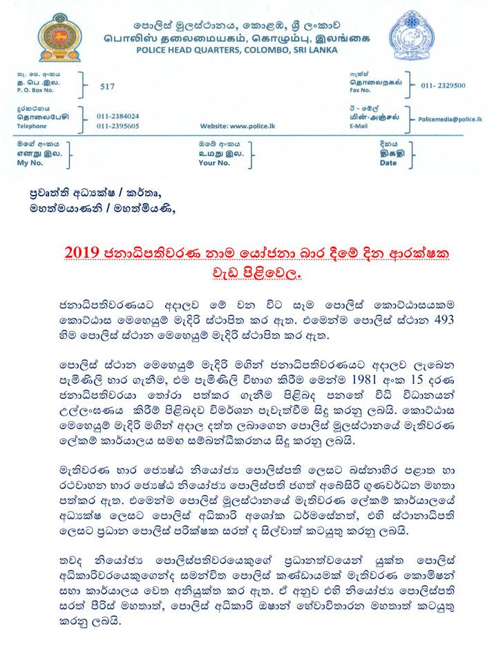 එළැඹෙන ජනනපතිවරණය වෙනුවෙන් සෑම පොලිස් කෝටඨාසයකම කොට්ඨාස මෙහෙයුම් මැදිරි හා සෑම පොලිස් ස්ථානයකම පොලිස් ස්ථාන මෙහෙයුම් මැදිරි ස්ථාපිත කර ඇති බව පොලිස් මූලස්ථානය පවසයි.