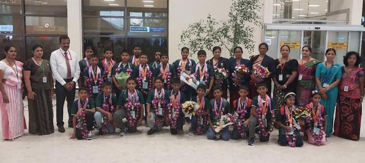 මෙම ජයග්රාහී සිසුන් පිරිස 10/10 දින පස්වරු 04.05 ට මැලේසියාවේ ක්වාලාලම්පූර් නුවර සිට ශ්රී ලන්කන් ගුවන් සේවයේ යූ.එල්.- 315 දරන ගුවන් යානයෙන් කටුනායක ගුවන් තොටුපොළ වෙත පැමිණ තිබූ අතර ඔවුන් පිළිගැනීම සදහා අධ්යාපන අමාත්යාංශයේ විද්යා සහ ගණිත විෂය අධ්යක්ෂවරුන් පිරිසක් ද , එම සිසුන්ගේ දෙමාපියන් ද ගුවන් තොටුපොළ වෙත පැමිණ සිටියහ.