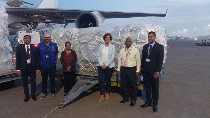 කිලෝ ග්රෑම් 69,000 ක් බරැති ආපදා ආධාර තොගයක් යුරෝපා සංගමයට අයත් ජර්මනියෙන් සහ ලක්සම්බර්ග් යන දෙරටින් රැගෙන විශේෂ භාණ්ඩ ප්රවාහන ගුවන් යානයක් 12/17 දින අලුයම කටුනායක ගුවන් තොටුපොළ වෙත පැමිණියේය.