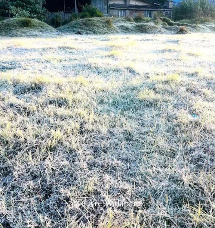 නුවරඑලිය ප්ර දේශයට (22) දින අලුයම සෙල්සියස් අංශක 3.5ක උෂ්ණත්වයක් පැවතිම හේතුවෙන් මල් තුහිණ පතිත වූ බවයි ජරිසරවේදින් කියා සිටින්නේ.
