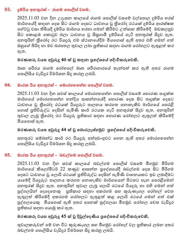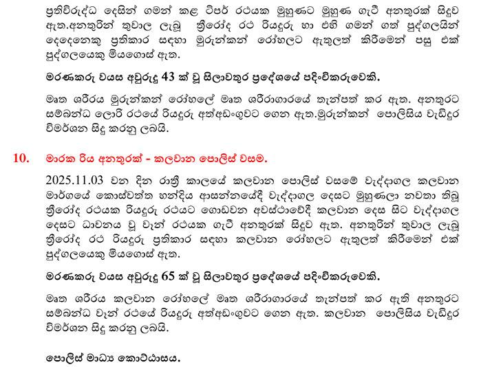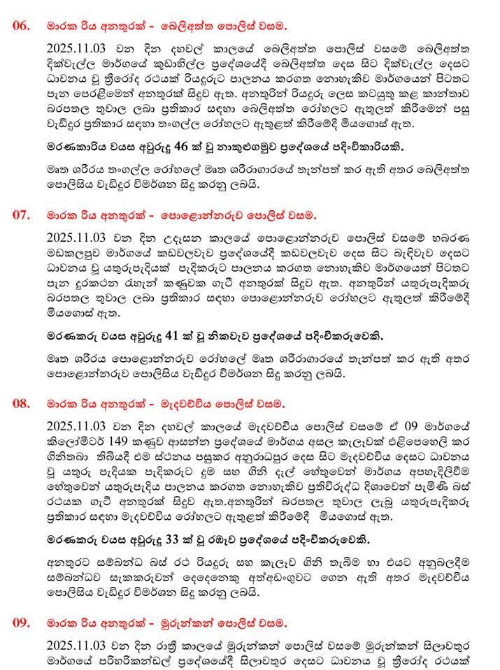 2025 නොවැම්බර් මස 04 වන අඟහරුවාදා