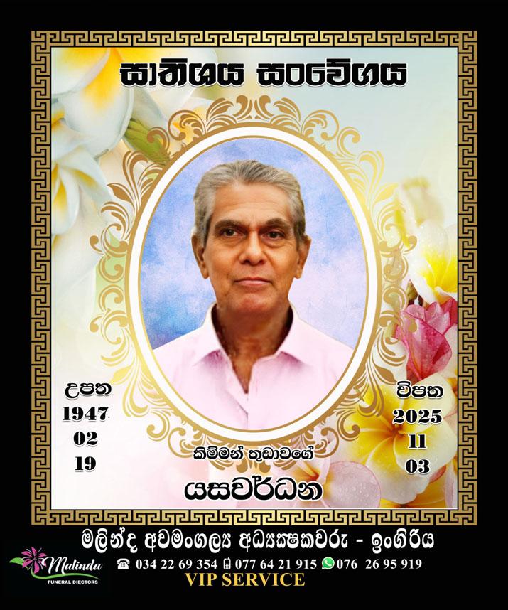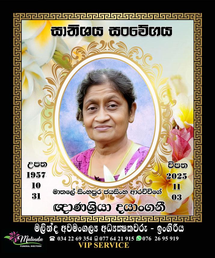 මෙම දේහයන් ඉංගිරිය රෝහල ඉදිරිපිට මලින්ද මල් ශාලාවේ තැන්පත් කර ඇති අතර අවසන් කටයුතු අද දින ( 05) ප.ව. 2.00 ට ඉංගිරිය ආදාහනාගාරයේ දී සිදු කිරිමට නියමිතය.