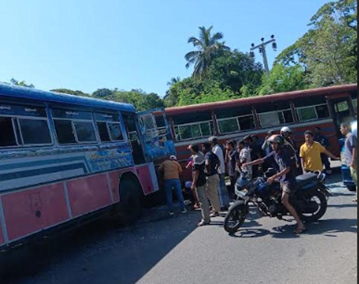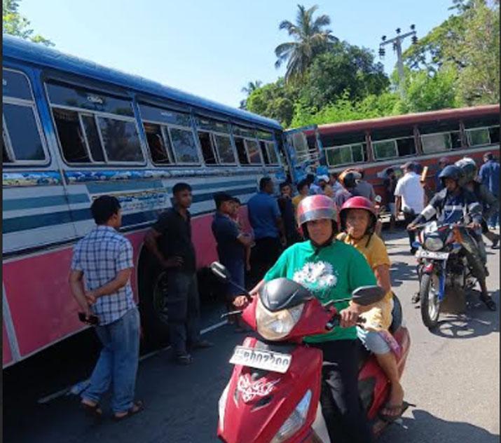 අද පෙරවරු අටයි තිහට පමණ(26) මහනුවර සිට ත්රිකුණාමලය දක්වා ධාවනය වූ ලංගම බස් රථයක් පුද්ගලික බස් රථයක මුහුණට මුහුණ ගැටීමෙන් ලංගම බස් රථයේ ගමන් ගත් 12 දෙනෙකු නාලන්ද රෝහලට ඇතුලත් කර ඇතැයි නාඋල පොලිසිය කියයි.