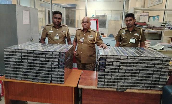 ඔවුන් විසින් රැගෙන ආ ගමන් මලු තුළ " ප්ලැටිනම්'' වර්ගයේ දුම්වැටි 119,000 ක් අඩංගු දුම්වැටි කාටූන් 595 ක් සගවා ගෙන සිටියදී පොලිස් නිලධාරීන් විසින් අත් අඩංගුවට ගෙන තිබේ .