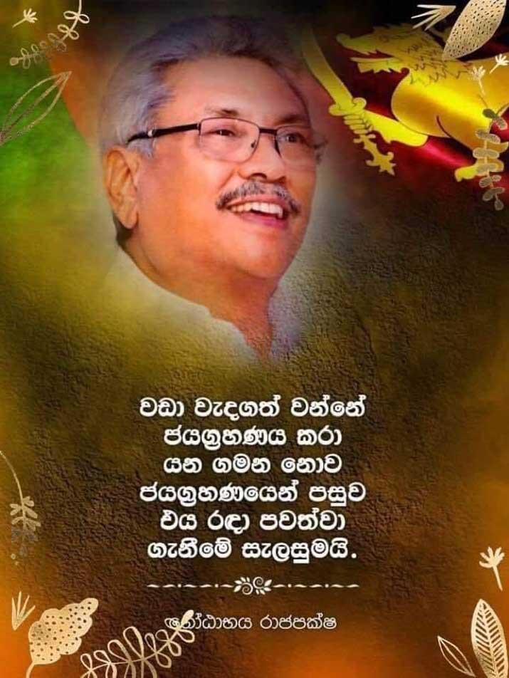 වඩා වැදගත් වන්නේ ජයග්රහණය කරා යන ගමන නොව ජයග්රහණයෙන් පසුව එය රඳා පවත්වා ගැනීම බව ඡන්දයෙන් පත්වූ ජනපති ගෝඨාභය රාජපක්ෂ මහතා සිය ට්විටර් ගිණුමෙන් ප්රකාශ කරයි.