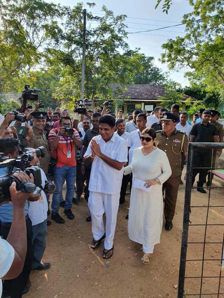 නව ප්රජාතන්ත්රවාදී පෙරමුණේ ජනාධිපති අපේක්ෂක, අමාත්ය සජිත් ප්රේමදාස මහතා හා ඔහුගේ බිරිඳ හම්බන්තොටදී සිය ඡන්දය භාවිත කරනු ලැබීය.