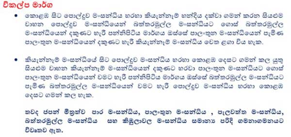ජාතික රණවිරු අනුස්මරණ උත්සවය පැවැත්වෙන 19 දා පොල්දූව මන්සන්ධියේ සිට පාර්ලිමේන්තු මාර්ගයේ කියැන්නෑම් මංසන්ධිය දක්වා වාහන ගමනය සීමා කරන බව පොලීසිය පවසයි.