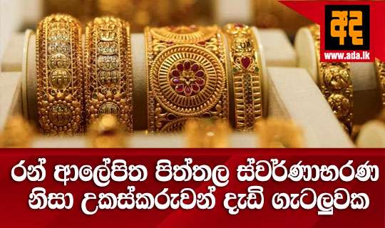 Read Moreරන් මිල ඉහළ යෑම හමුවේ රන් ආලේපිත පිත්තලෙන් සකස් කරන ලද ස්වර්ණාභාරණ ජාවාරම්කරුවන් පිරිසක් විසින් හැටන් ඇතුලු වතුකරයේ ස්වර්ණාභරණ උකසට ගන්නා රාජ්ය සහ පෞද්ගලික අංශයේ ආයතන රැසකට උකස් තබා මුදල් ලබා ගෙන ඇති බව ස්වර්ණාභරණ උකස්කරුවන් කියා සිටියි.