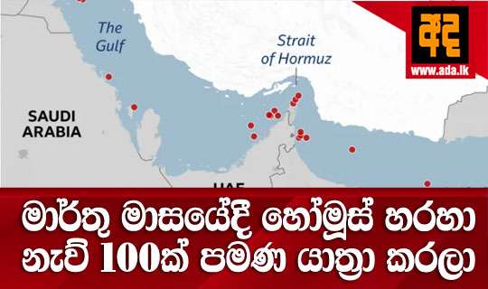 මාර්තු මාසයේ ආරම්භයේ සිට හෝර්මුස් සමුද්ර සන්ධිය හරහා නැව් 100 කට ආසන්න ප්රමාණයක් ගමන් කර ඇති බව බී.බී.සී.පුවත් සේවය පවසයි.