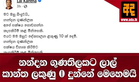 ජනතා විමුක්ති පෙරමුණේ හිටපු පක්ෂිකයෙක් වූ නන්දන ගුණතිලක මහතා අද අභාවප්රාප්ත විය. ඔහු ජවිපෙන් දේශපාලනයට පිවිසුනද පසුව පක්ෂයෙන් ඉවත්විය. ජනතා විමුක්ති පෙරමුණේ හිටපු තම සගයා සම්බන්ධයෙන් ජවිපෙ වත්මන් සාමාජිකයෙක් මෙන්ම අමාත්යවරයෙක් වන කේ.ඩී. ලාල්කාන්ත මහතා දැක්වූ අදහසයි මේ.