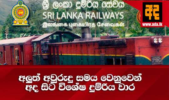 අලුත් අවුරුදු සමය වෙනුවෙන් විශේෂ දුම්රිය ගමන් වාර අද (09) සිට ක්රියාත්මක කෙරෙන බව දුම්රිය දෙපාර්තමේන්තුව පවසයි.